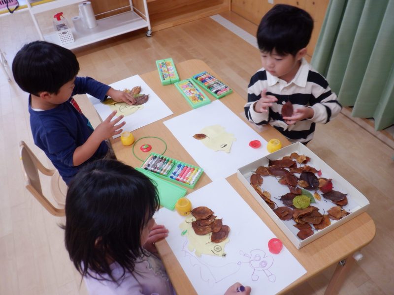 2025.10.31 10月のりんごリンゴ狩りをさせてもらいました。「おいしそう!」ととても良い表情の子どもたちでした。「これにしようかしら?おいしそう!」落ち葉の花火の準備中お散歩で拾った落ち葉で制作中♪かわいいひよこ組さんとお散歩に出発♡ りんご狩り☆ポニーが来たよ☆