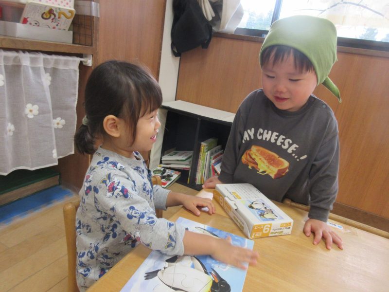 友だちと一緒にパズル完成!!